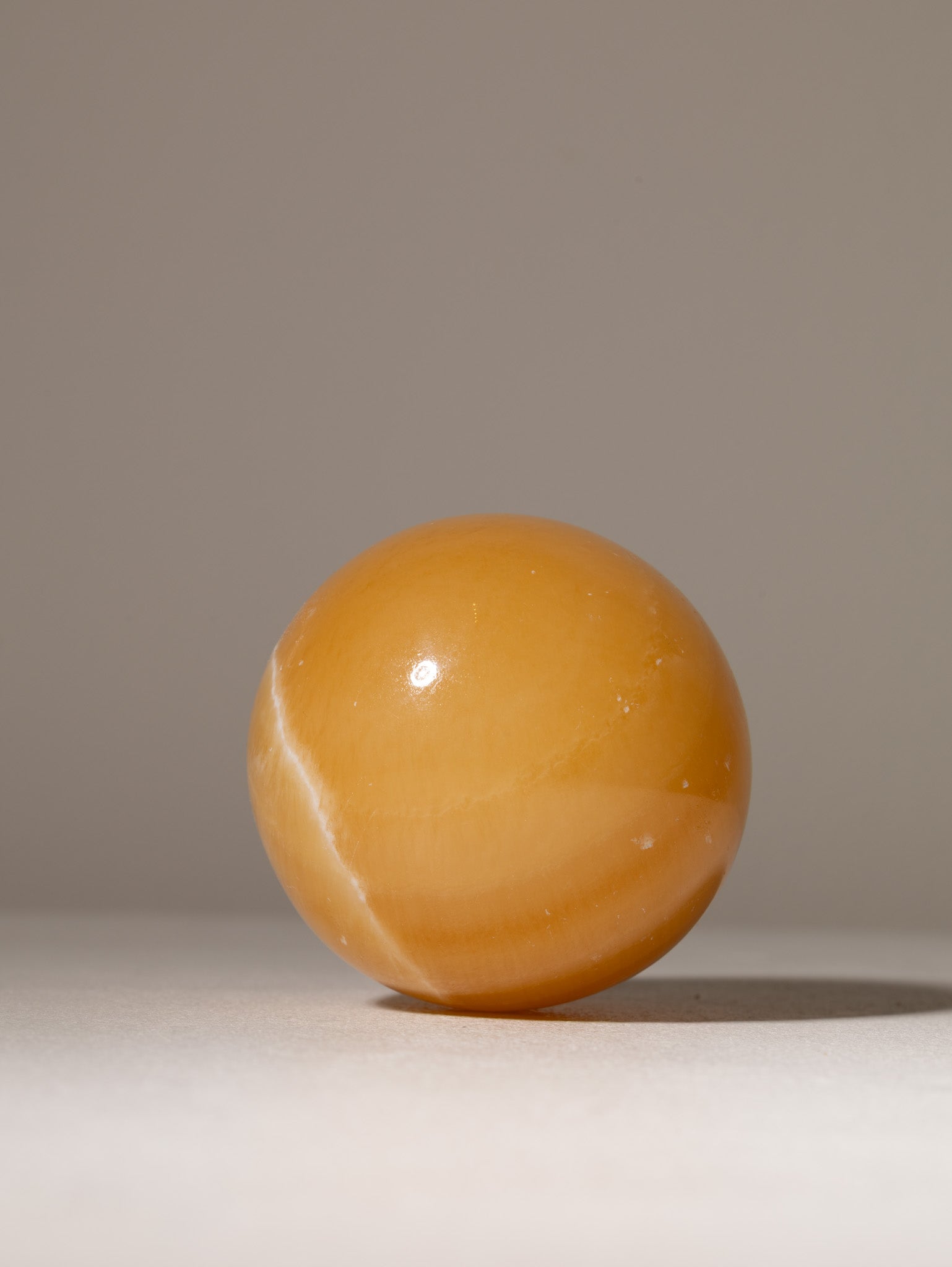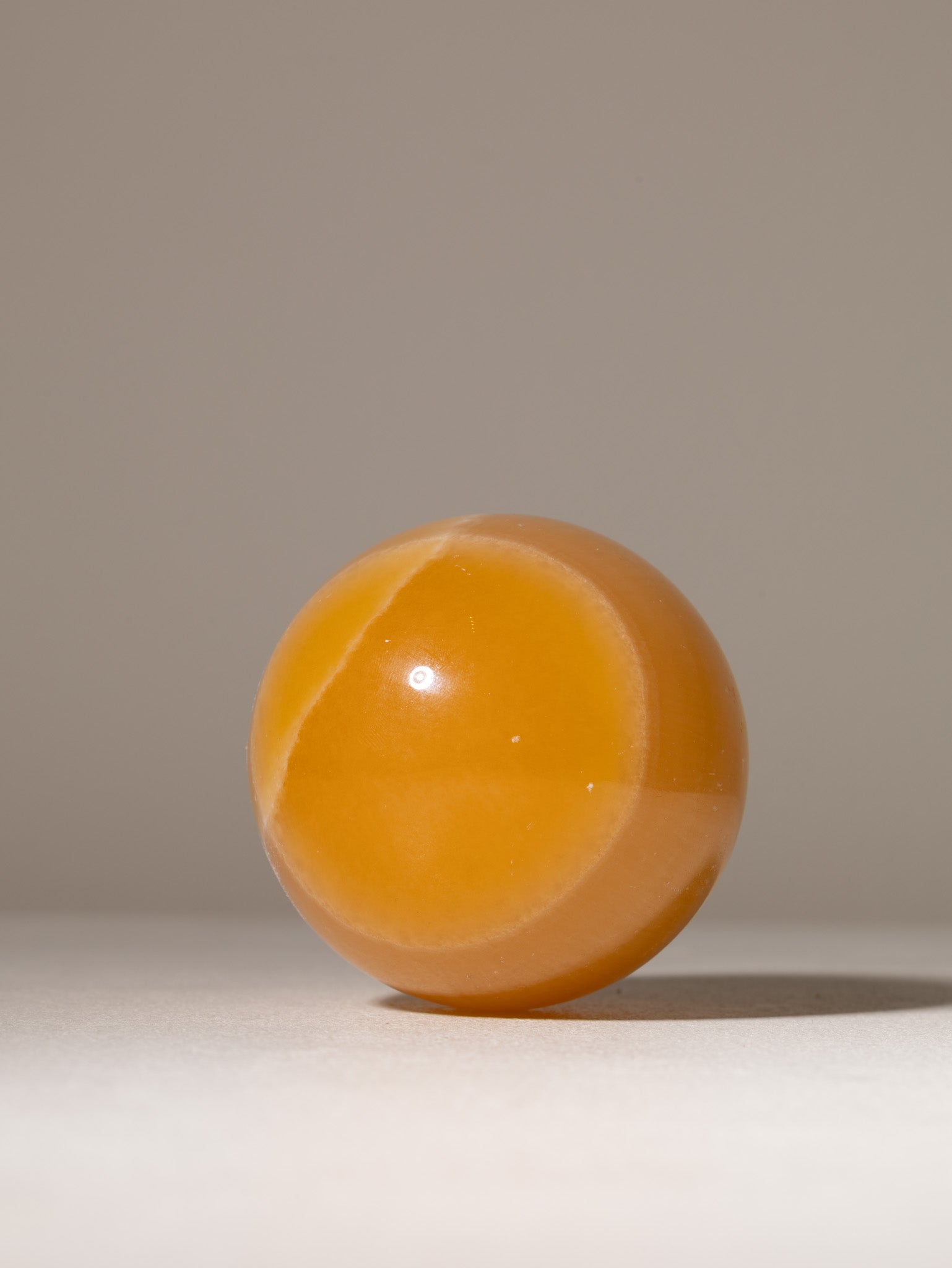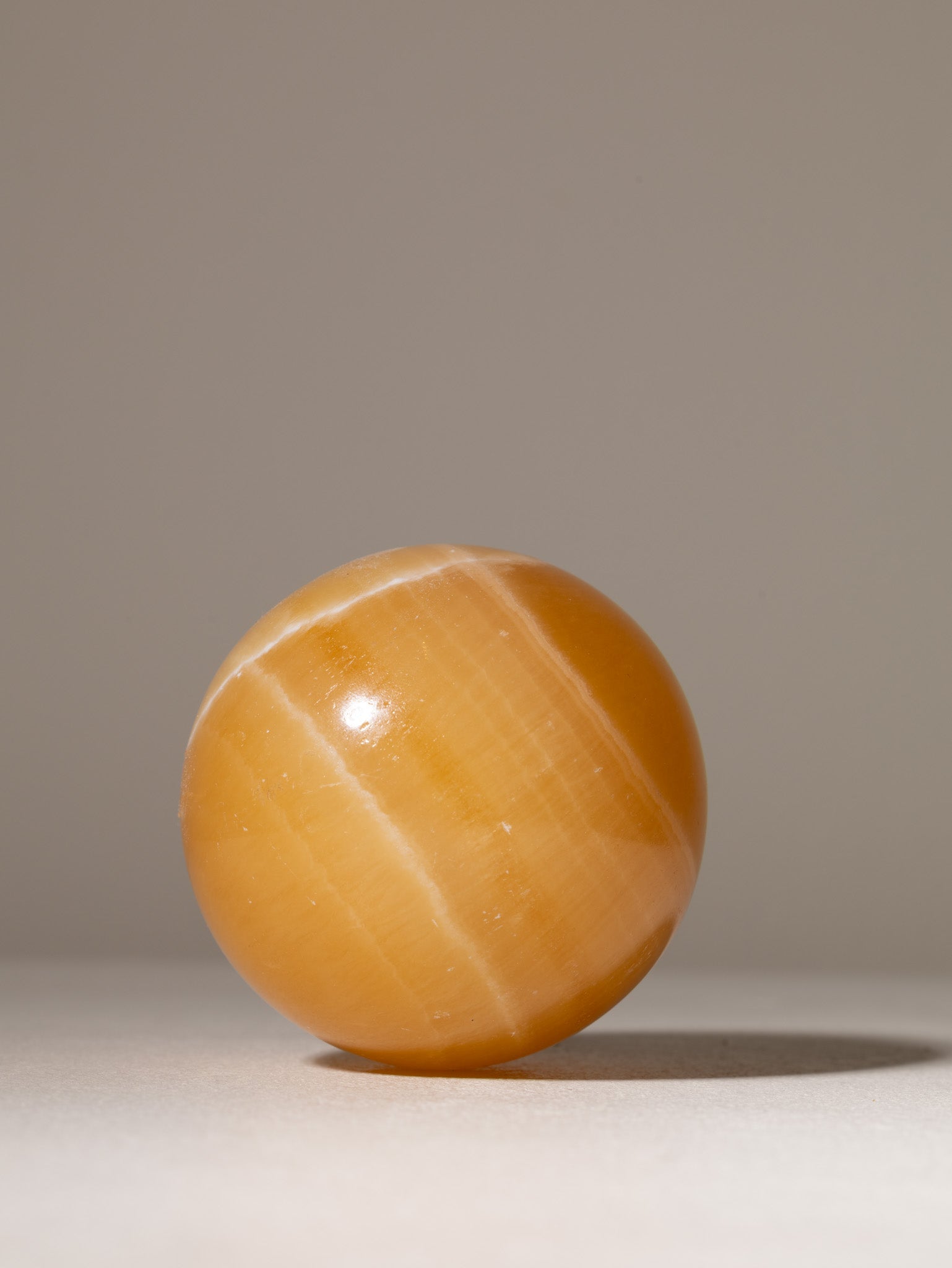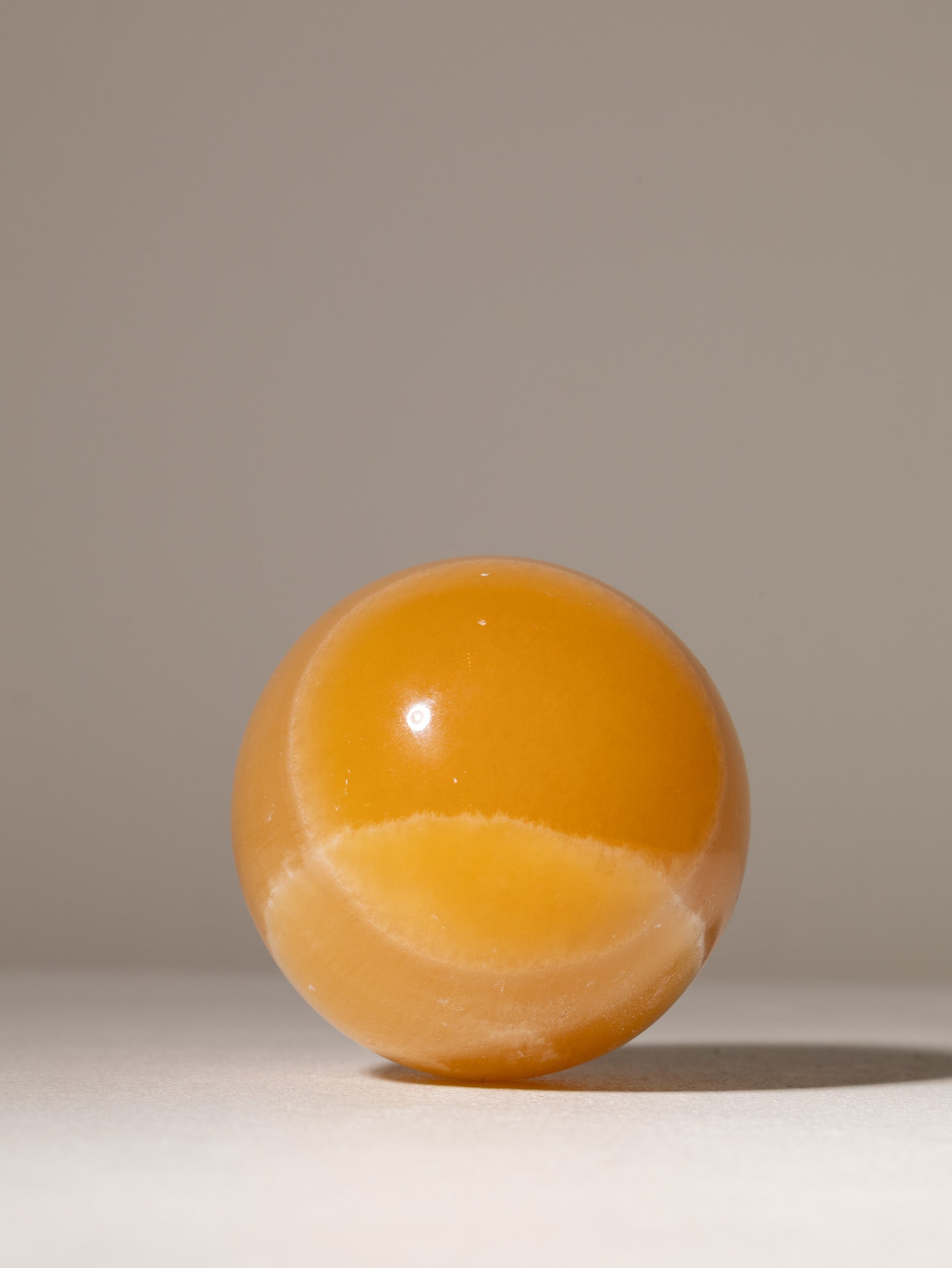 Orangencalcit strahlt in kräftigem Orange. Er fördert Lebensfreude, Motivation und neue Energie.