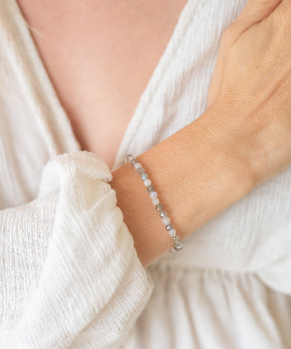 Labradorit fasziniert mit seinem einzigartigen Farbspiel. Er symbolisiert Intuition, Schutz und innere Stärke – ein wahrer Mystik-Stein.