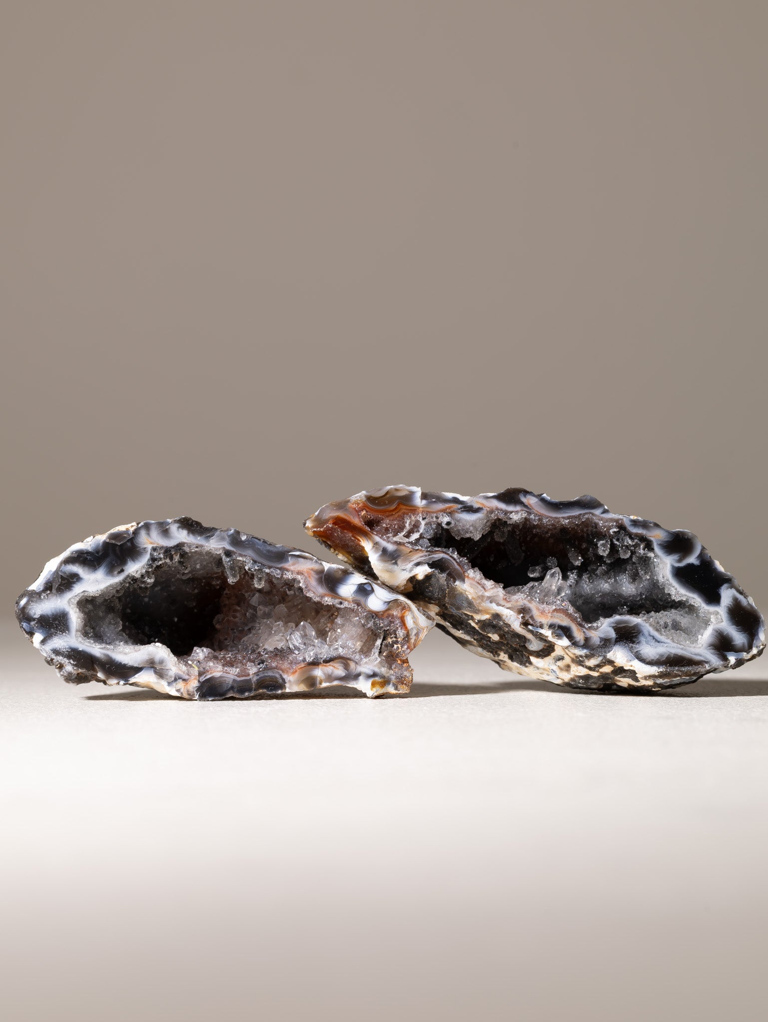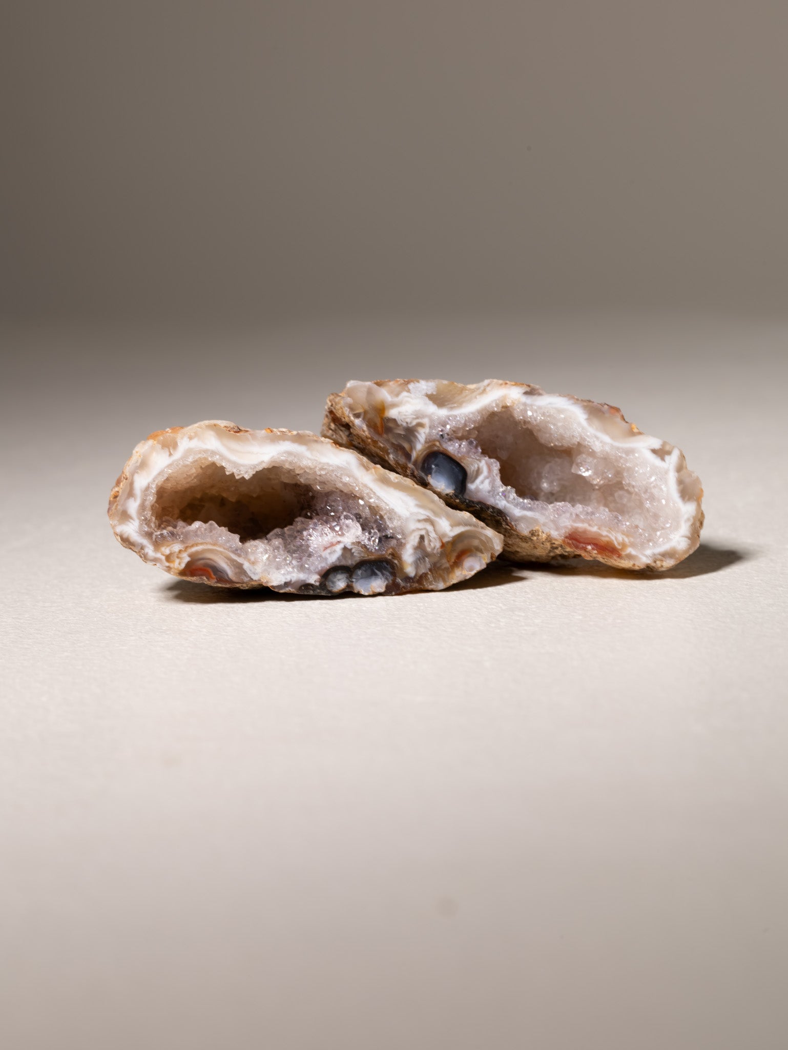 Achat ist eine gebänderte Varietät des Quarzes, bekannt für seine einzigartigen Farbmuster und große Vielfalt. Von Botswana- bis Moosachat – jede Sorte hat ihre ganz eigene Schönheit. Beliebt als Schmuck- und Schutzstein, steht er für Stabilität, Erdung und Harmonie.