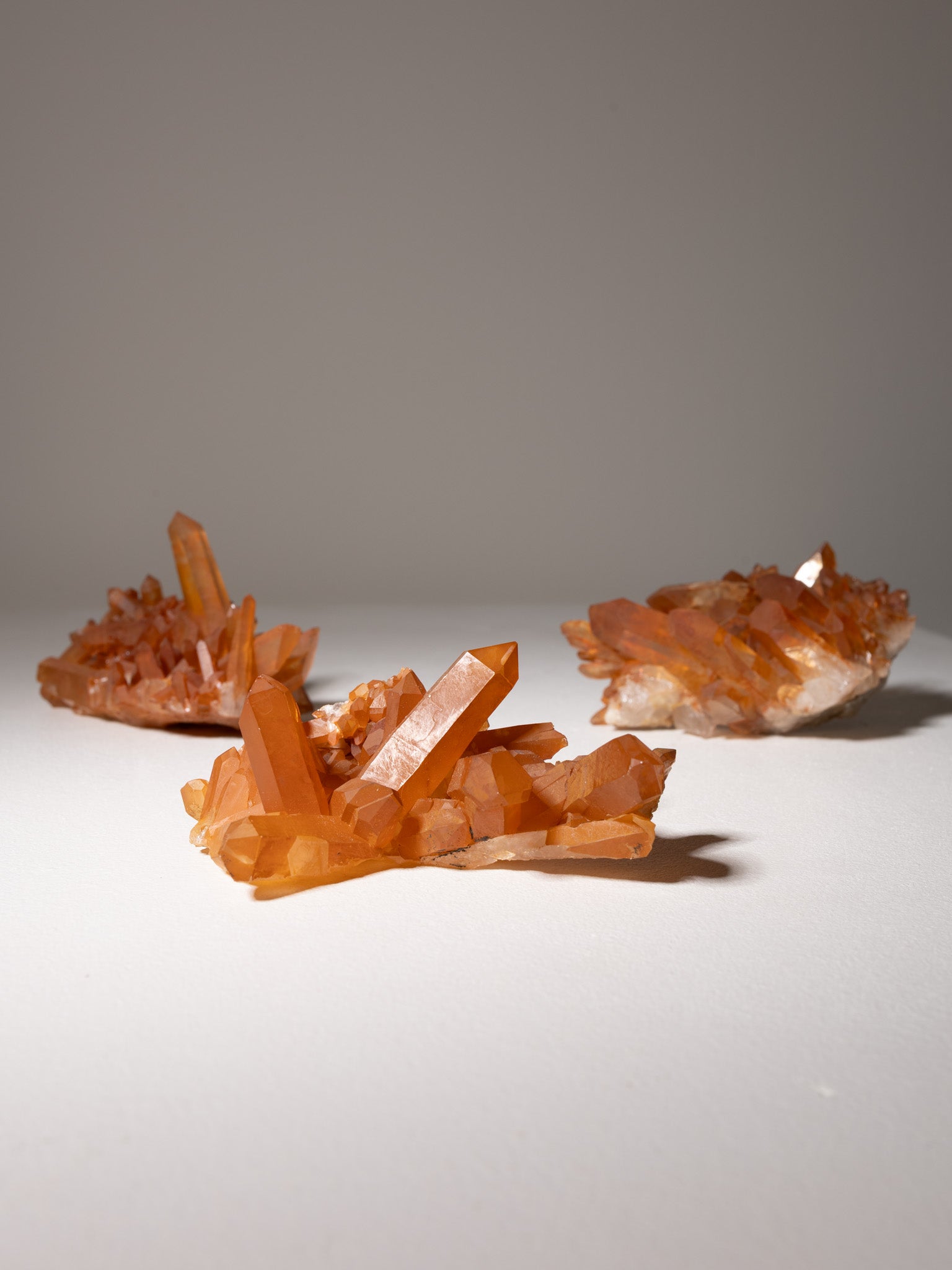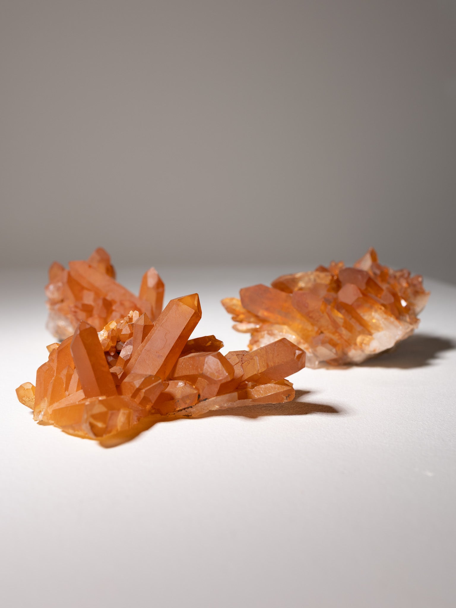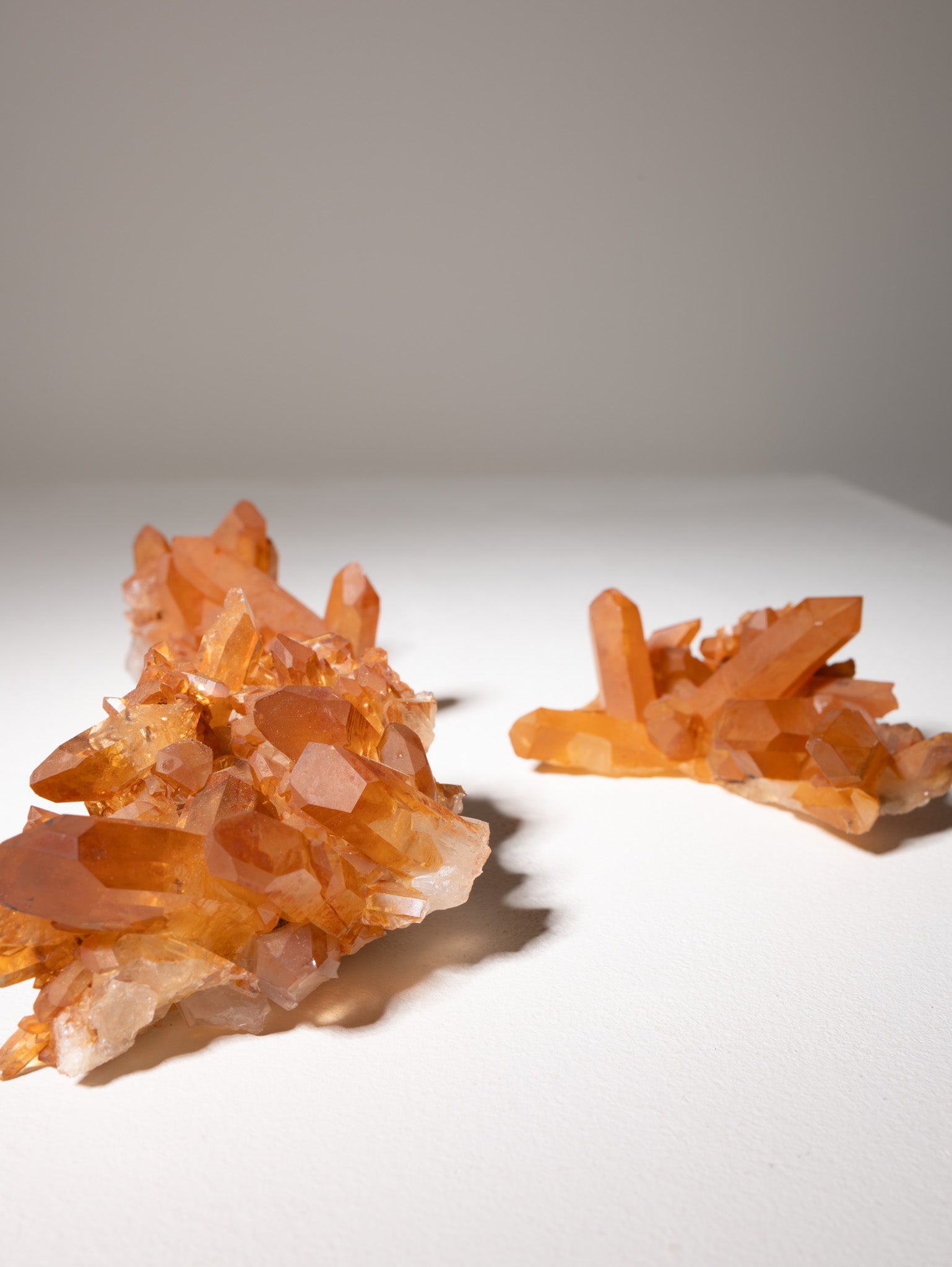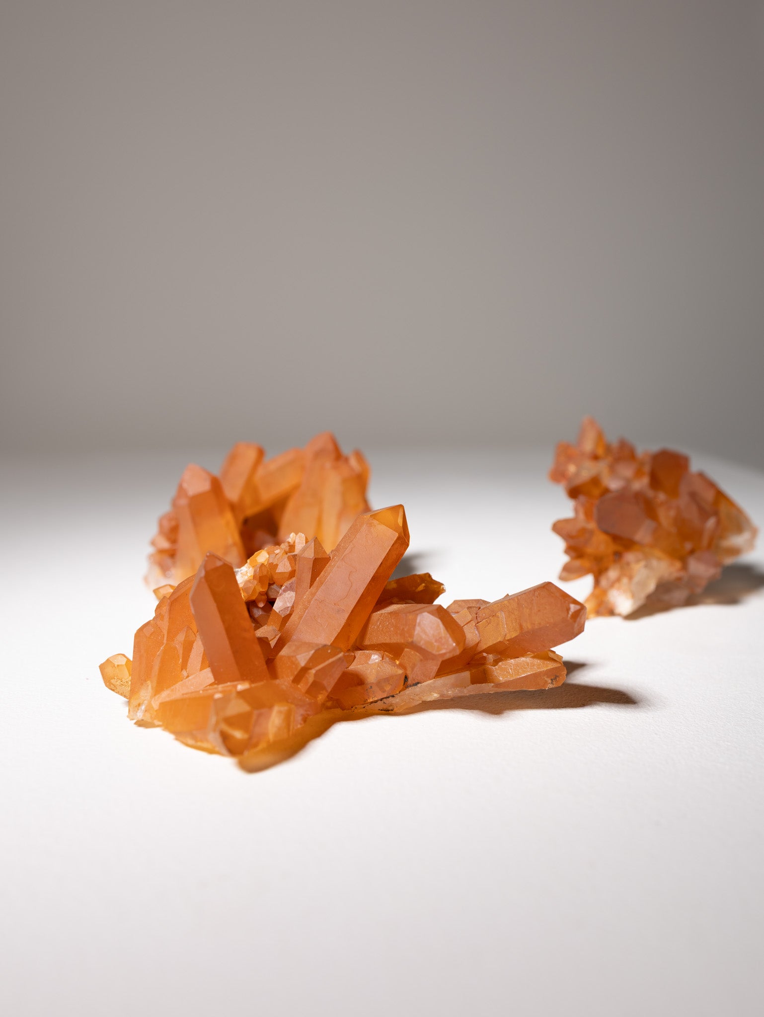 Mandarinenquarz leuchtet in warmem Orange. Er symbolisiert Lebensfreude, Kreativität und Optimismus und unterstützt dabei, neue Energie und Inspiration ins Leben zu bringen.