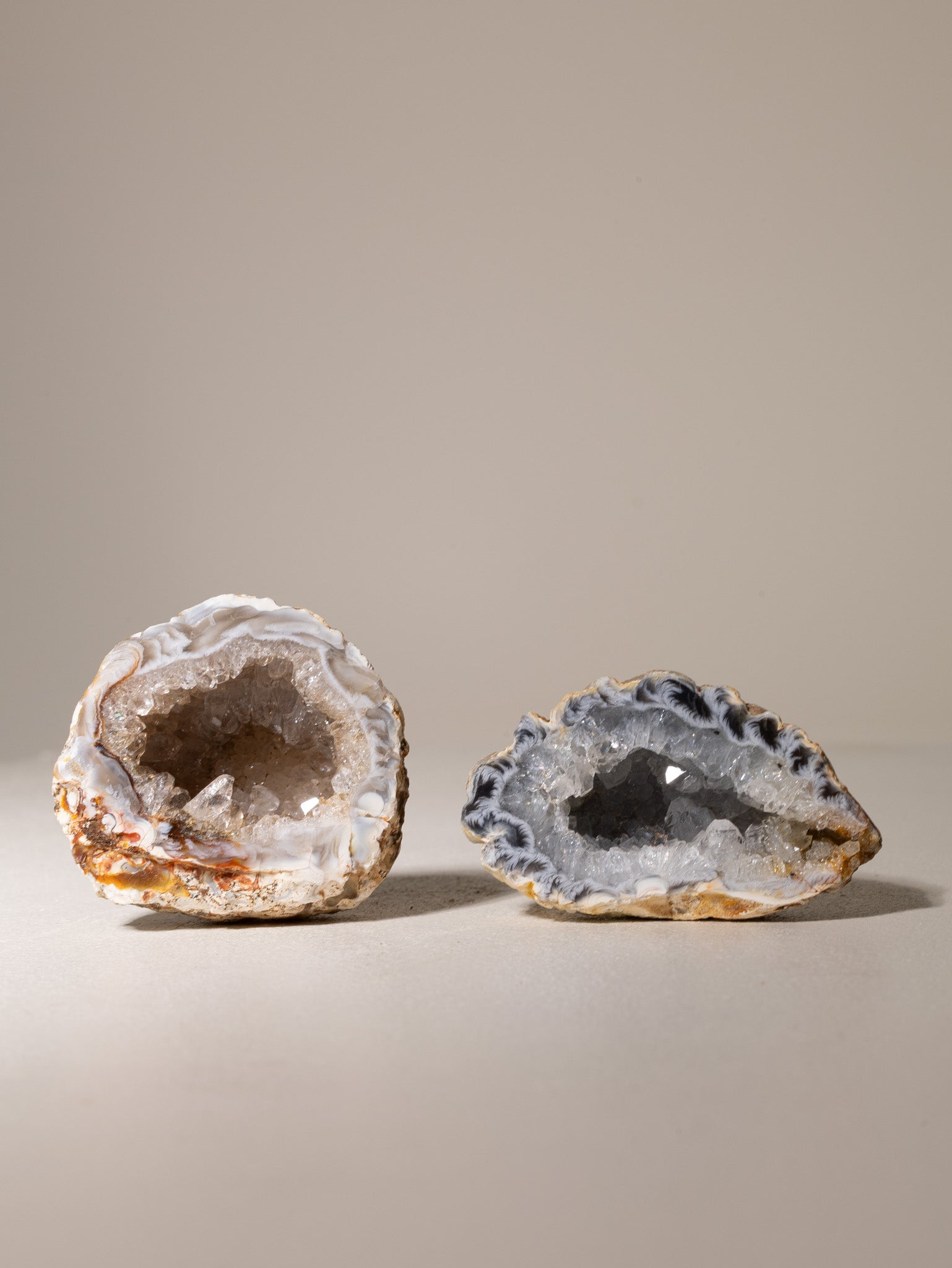 Achat ist eine gebänderte Varietät des Quarzes, bekannt für seine einzigartigen Farbmuster und große Vielfalt. Von Botswana- bis Moosachat – jede Sorte hat ihre ganz eigene Schönheit. Beliebt als Schmuck- und Schutzstein, steht er für Stabilität, Erdung und Harmonie.