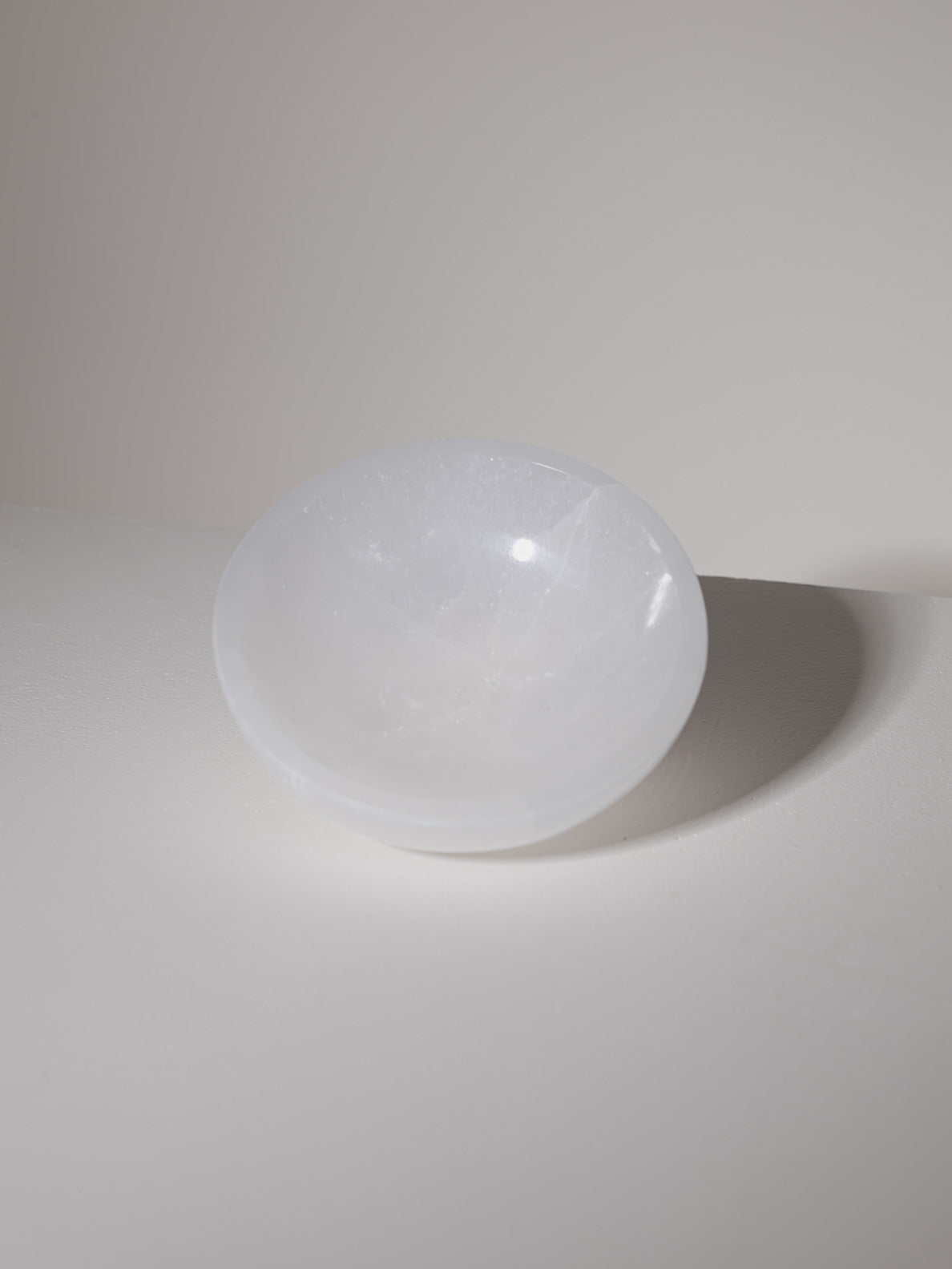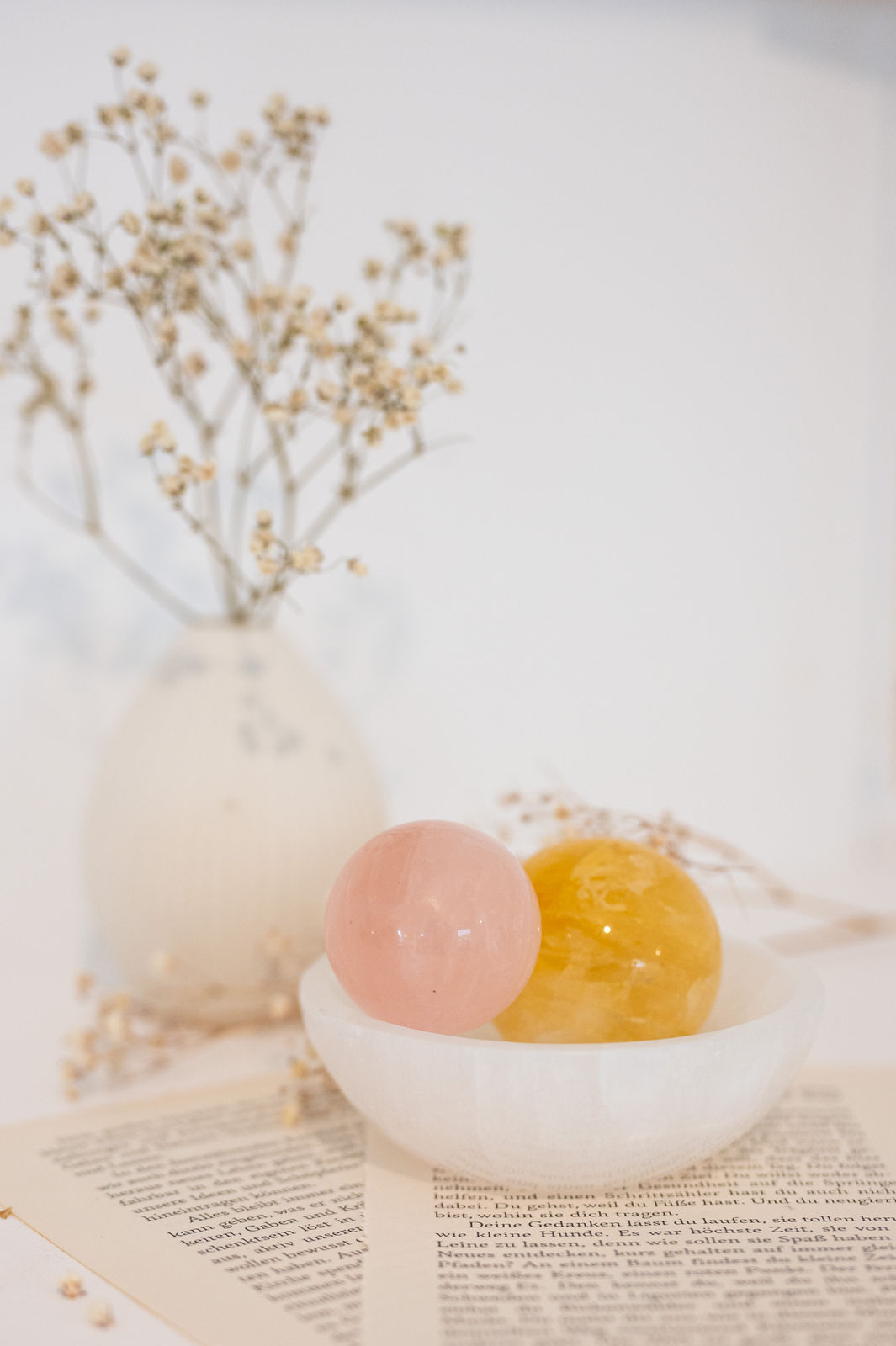 Du kannst die Schale dazu nutzen, deine Kristalle energetisch zu reinigen. Aber nicht unter Wasser - denn Selenit ist wasserlöslich.