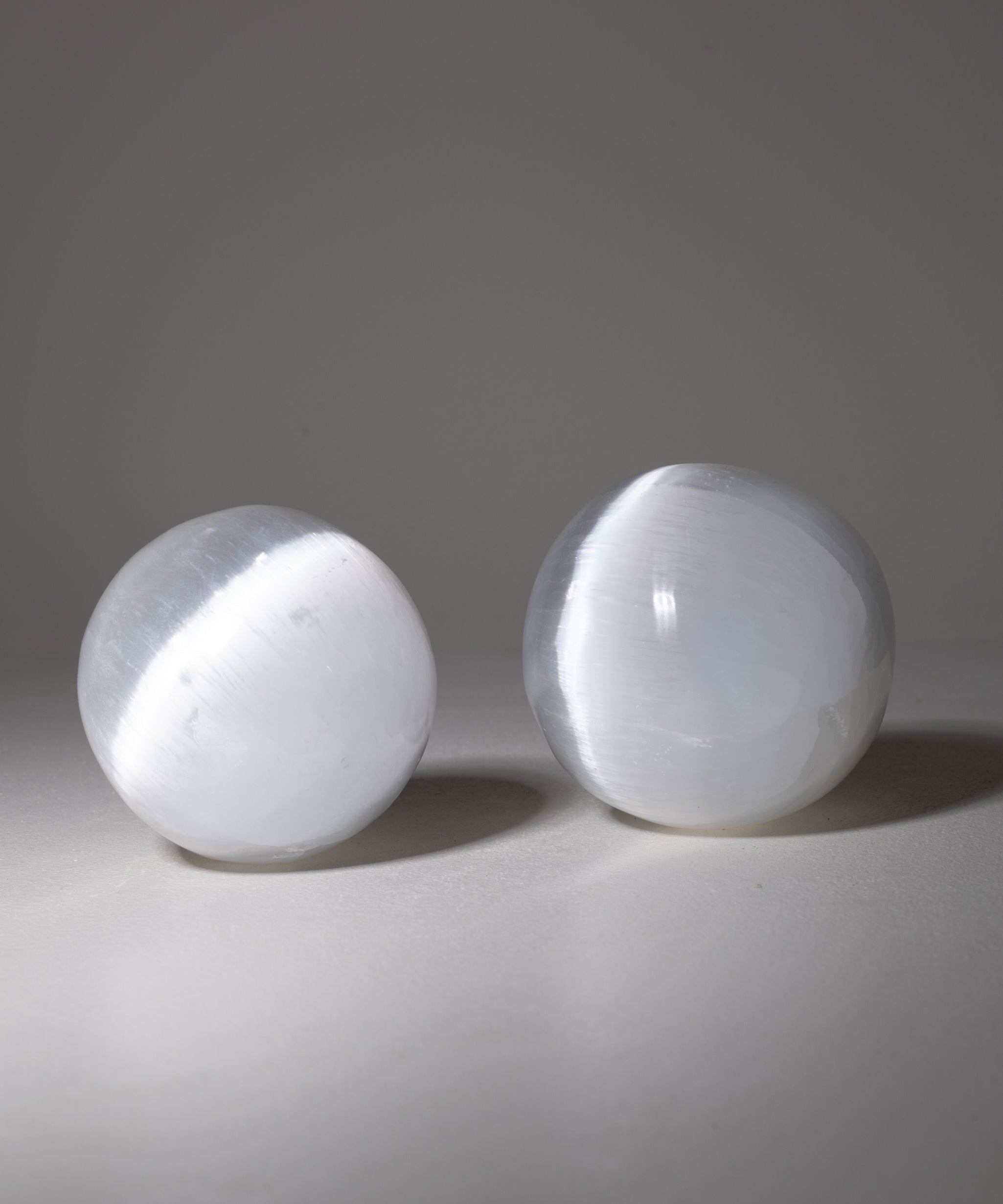 Selenit beeindruckt mit seinem seidigen Schimmer und seiner klaren Eleganz. Er steht für Reinheit, Klarheit und innere Ruhe und gilt als kraftvoller Stein zur Reinigung von Raum und Geist.