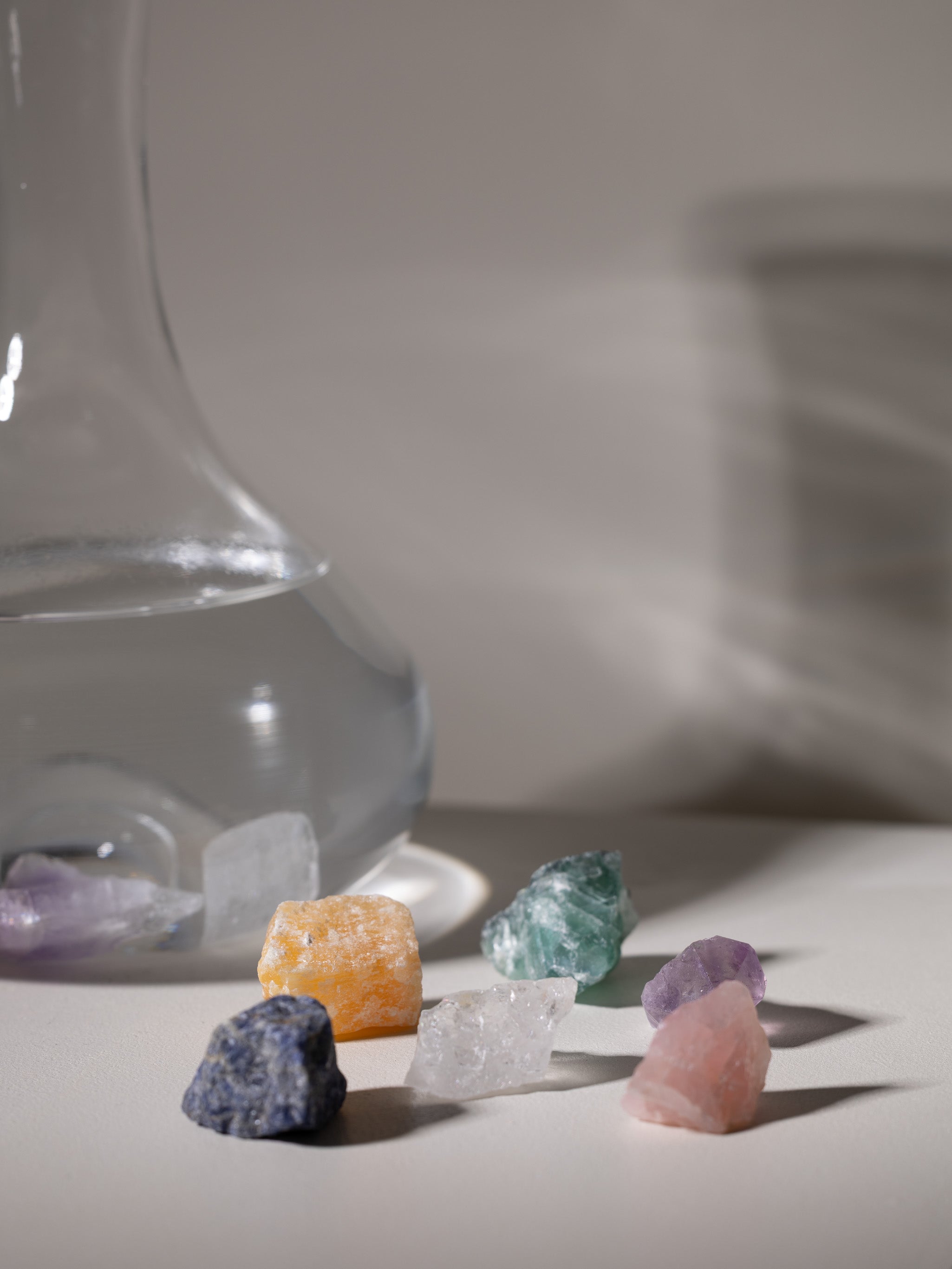 Mit diesen Steinen kannst du ganz einfach dein Trinkwasser energetisieren - gib die Kristalle in eine Glaskaraffe oder deine Trinkflasche und nach 3-5 Stunden ist dein Wasser energetisiert und mineralisch angereichert.