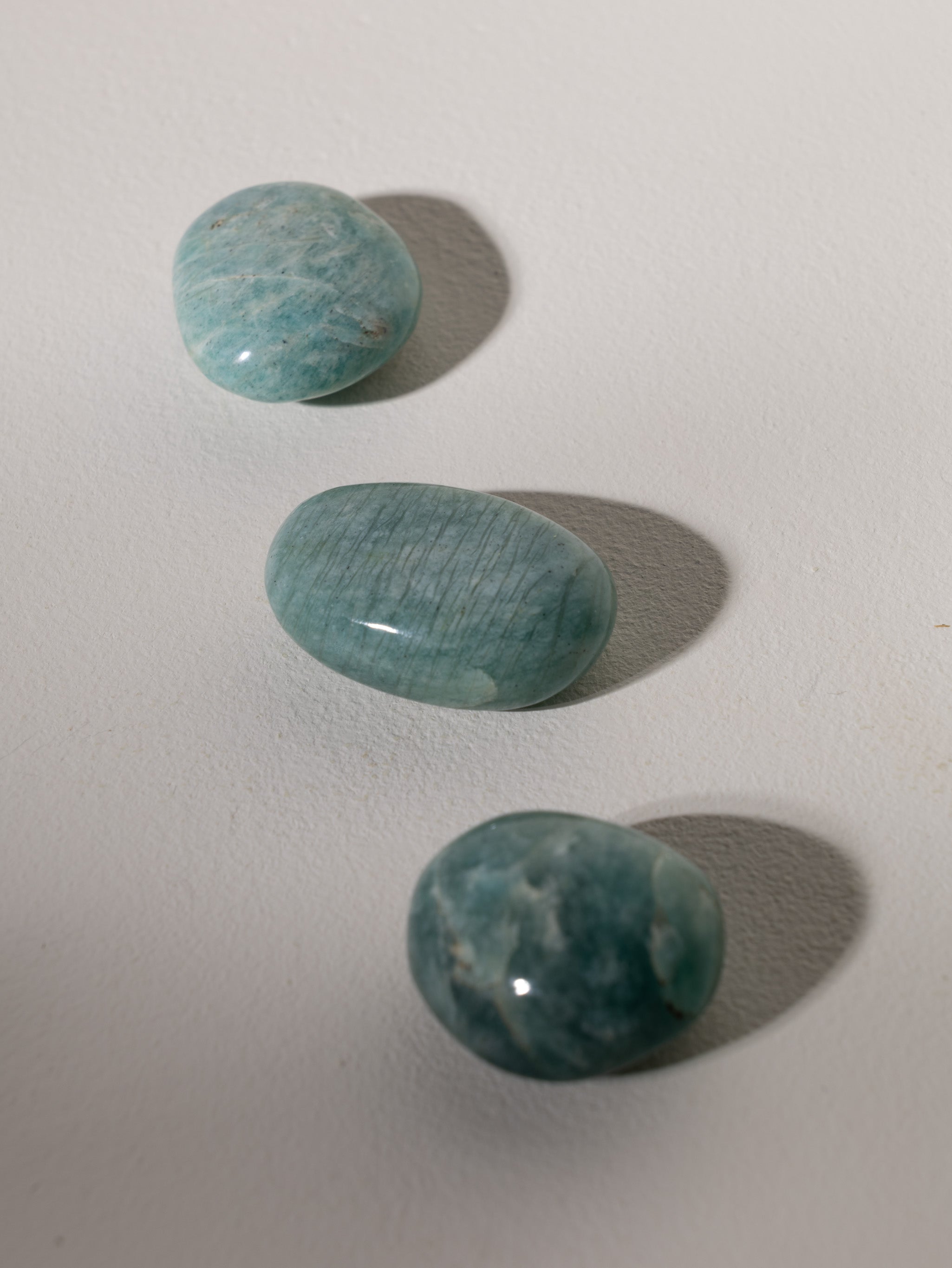 Amazonit zeigt sanftes Türkisgrün. Er symbolisiert Harmonie, Gelassenheit und das Fließen der Lebensenergie.