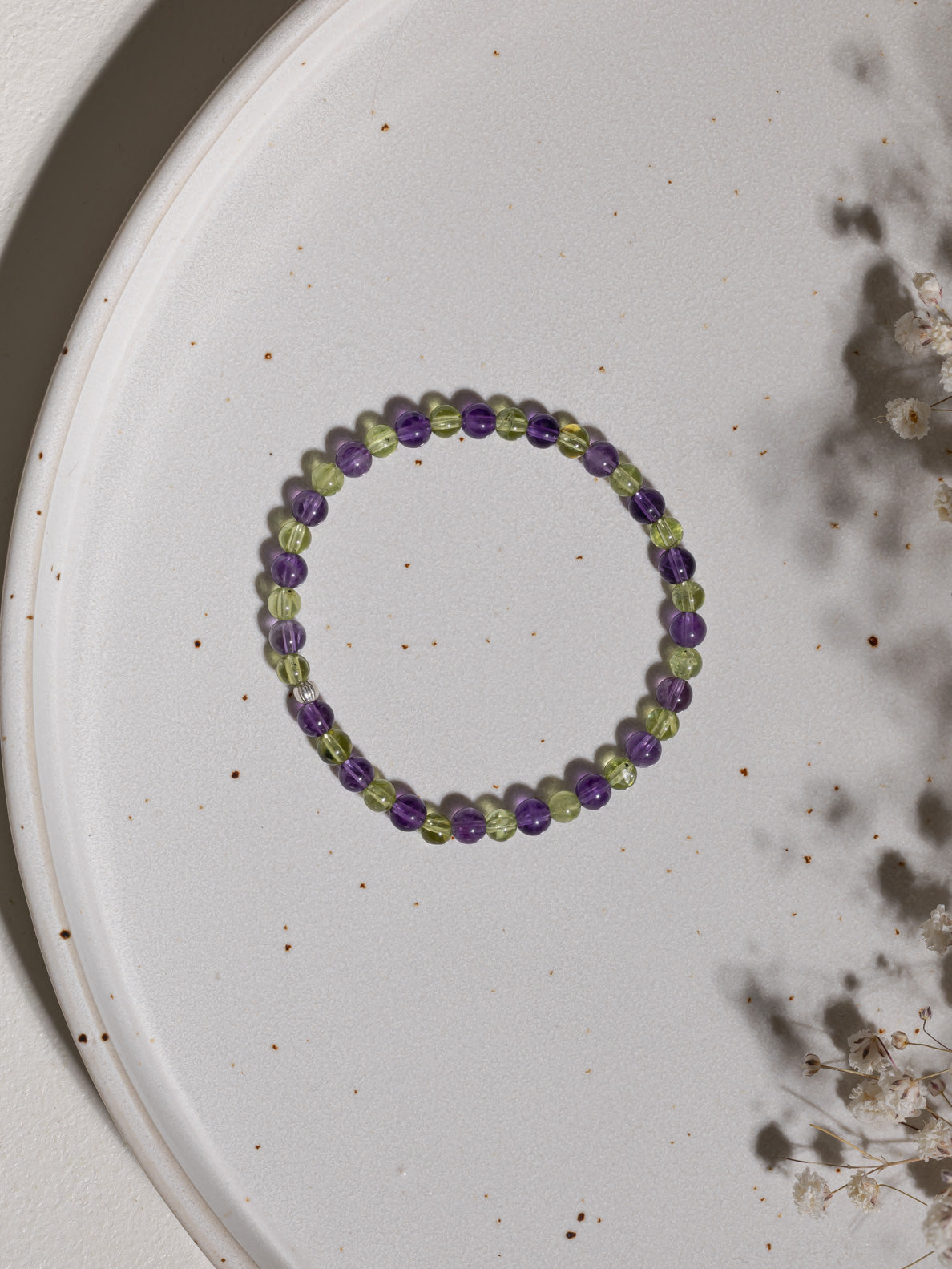 Dieses zarte Kinderarmband verbindet die sanfte und klärende Energie des Amethysts mit der frischen, lebensbejahenden Kraft des Peridots – ein zarter Begleiter, der Kinder stärken, beruhigen und zum Strahlen bringen kann.