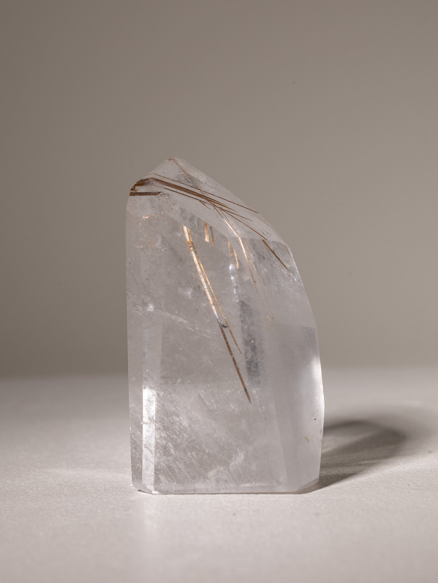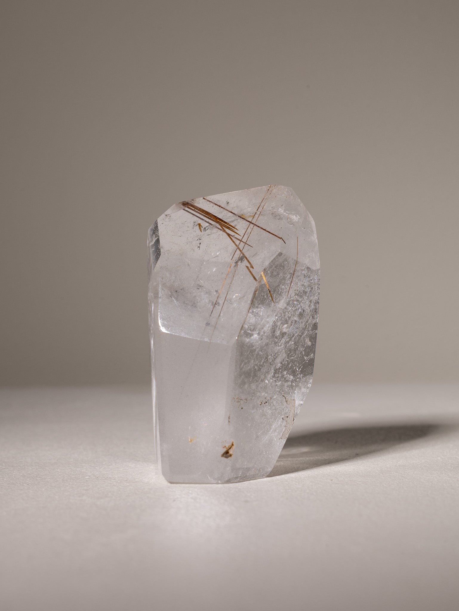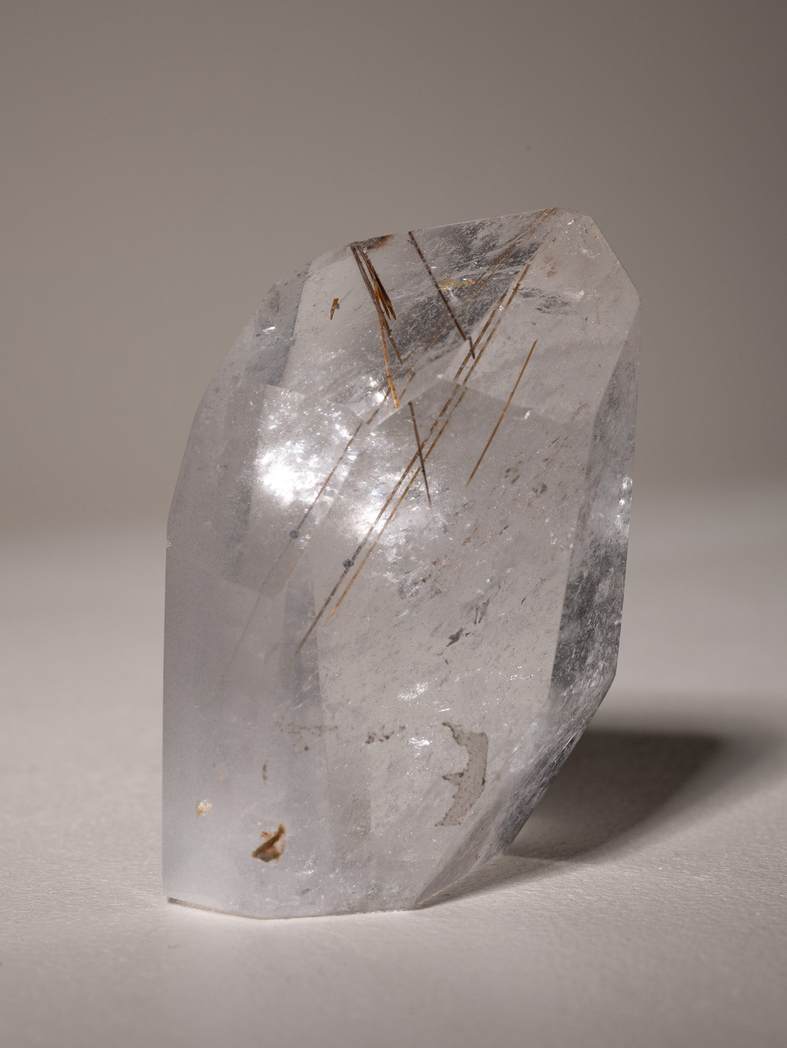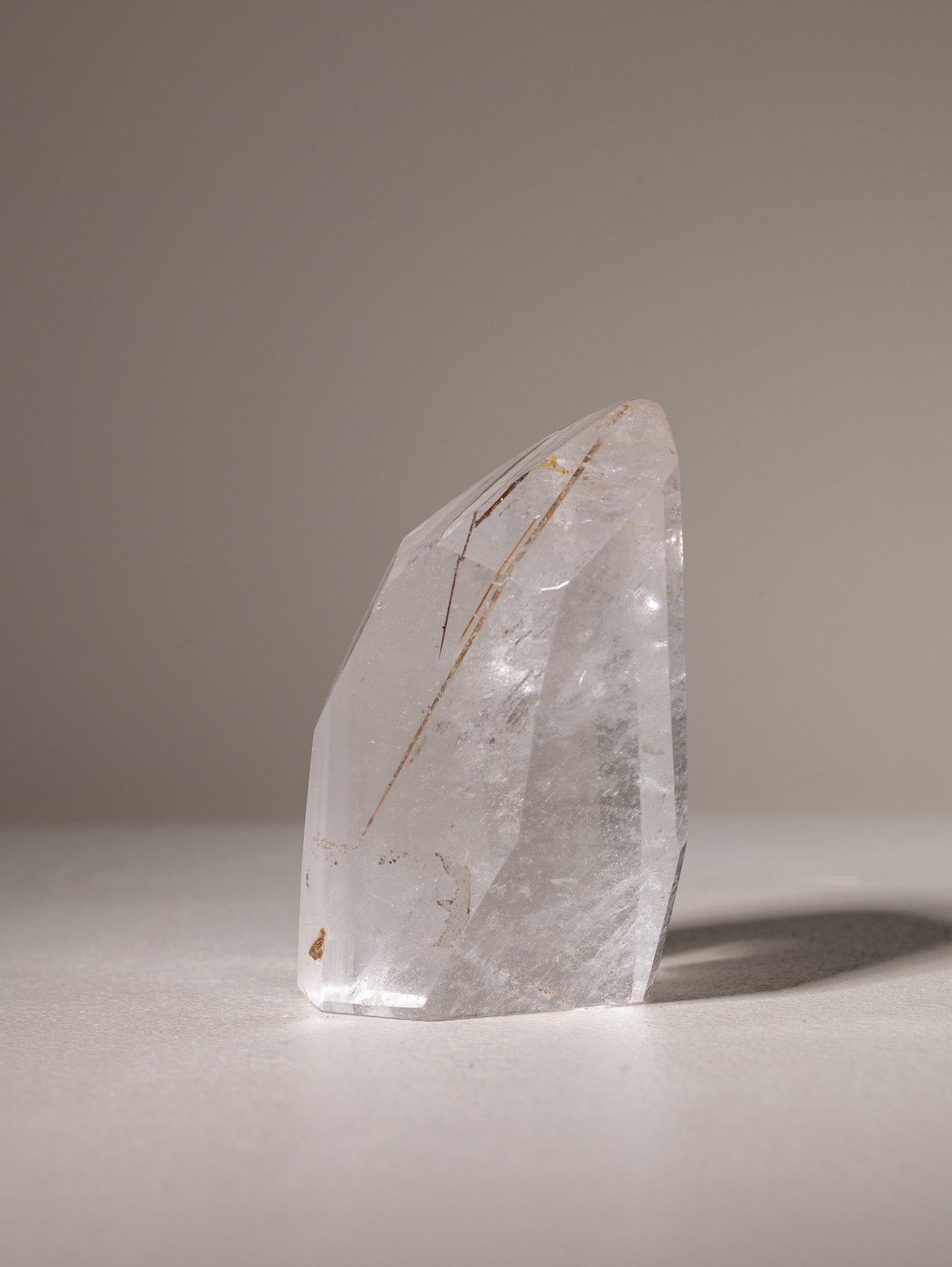 Bergkristall Freiform mit Rutilquarz Einschlüssen.