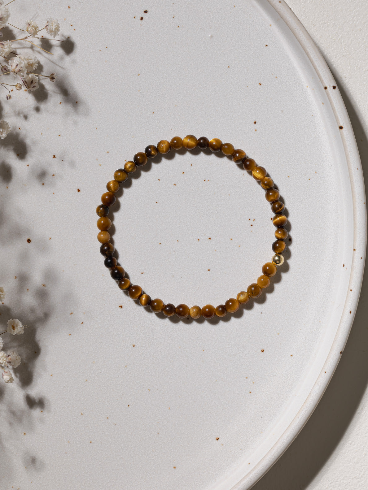 Tigerauge zeigt seinen charakteristischen gold-braunen Glanz. Es steht für Mut, Schutz und innere Balance und unterstützt dabei, den eigenen Weg mit Klarheit und Stärke zu gehen.